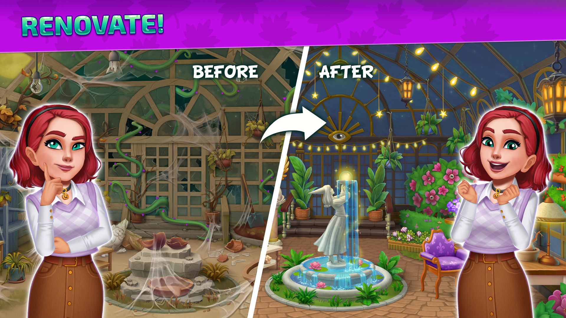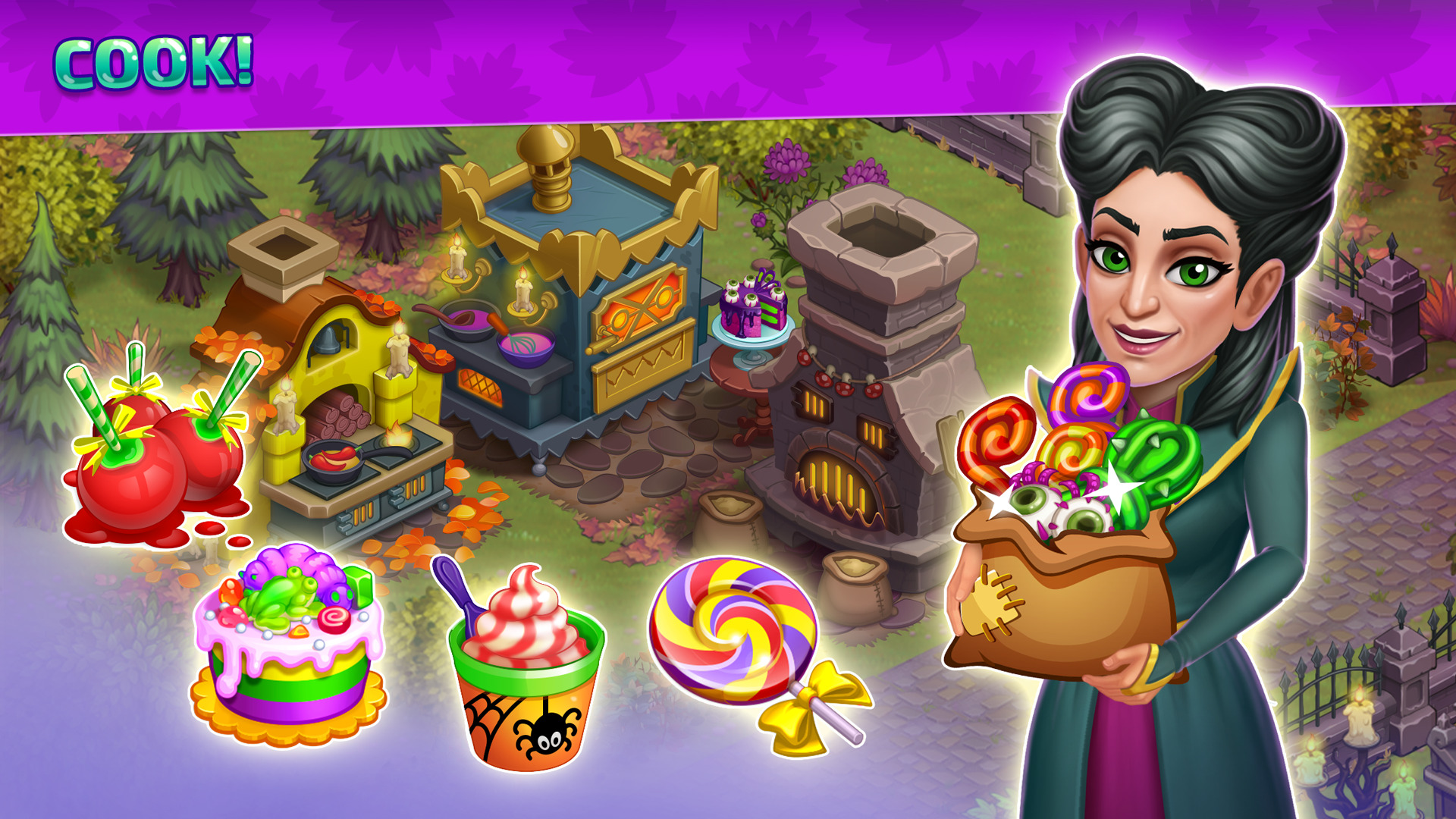 Create your own fairy Halloween farm: harvest magic plants, feed animals, trade with friends, craft sweets and costumes, renovate the house, build a Carnival fair. Evolve a big farm in spooky mansion from abandoned township!