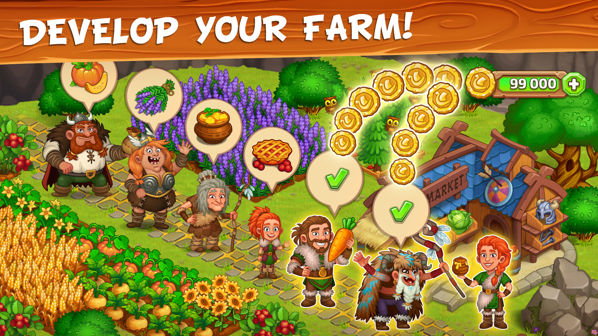 Sell and buy goods via ship with Viking sailors. Grow fish & octopus with a fisherman boy, extract ore and make axes & other instruments on your own! Loot silver and gold from other lands and islands! Even cold weather will not prevent Vikings!